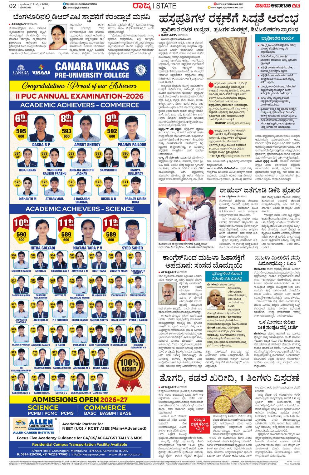 Vijaya Karnataka ePaper- Vijaya Karnataka online, Kannada epaper, Vijaya Karnataka edition, Breaking News in Kannada, Latest News in Kannada, Karnataka News Paper