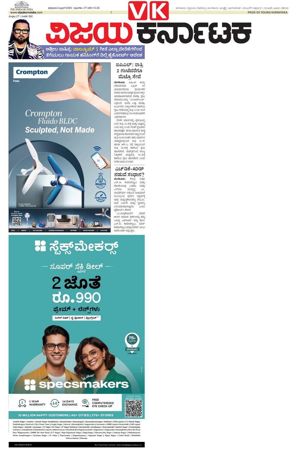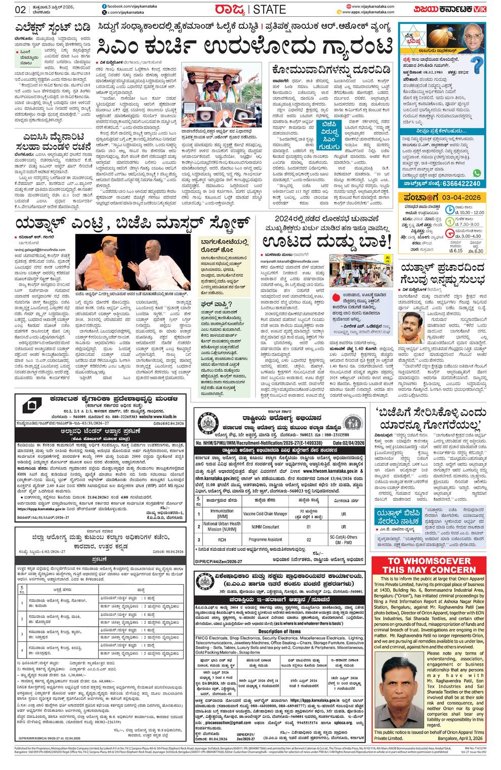 Vijaya Karnataka ePaper- Vijaya Karnataka online, Kannada epaper, Vijaya Karnataka edition, Breaking News in Kannada, Latest News in Kannada, Karnataka News Paper